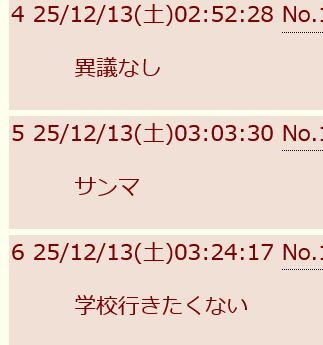 | … | 2025/12/13(土)03:45:14No.1381895820そうだねx21>死ぬときに「img荒らしてたの無駄な時間だったな」って後悔しながら死ぬんだからいいじゃん |