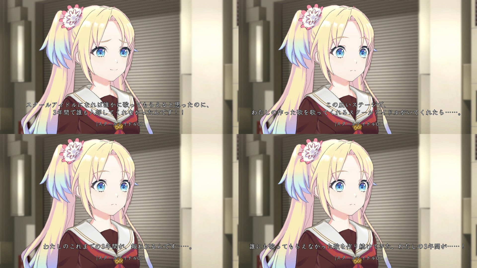 >最後は黄金のショッピングモールと「乙宗市」の看板を見て静かに涙を流す年老いた花帆ちゃんで締め