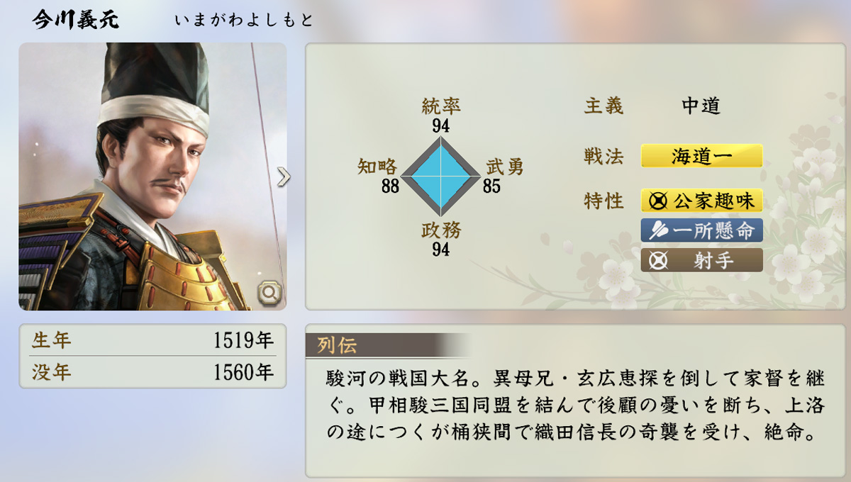 | … | 29925/12/13(土)15:37:25No.1382027580+今川義元こそが真の戦国大名の第一人者であるという視点は好き |