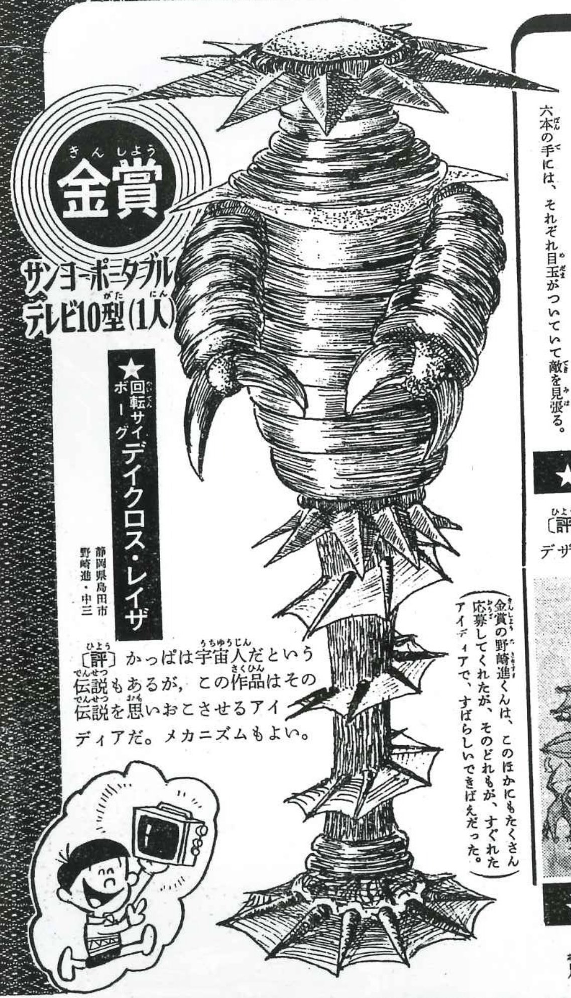 | … | 16825/12/13(土)16:02:32No.1382034209+>ちなみに銀賞のガイロスは名前の変更なく名シナリオに花を添える怪獣として登場している |