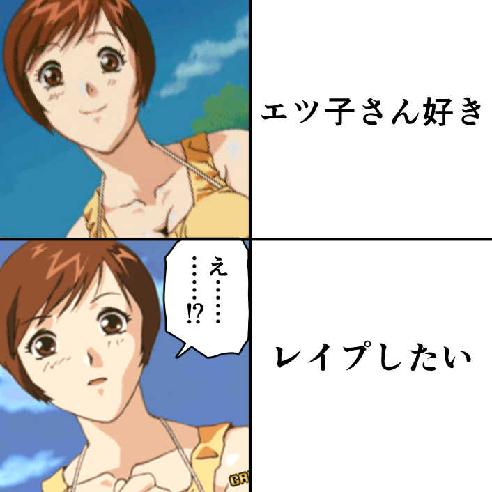 | … | 425/12/13(土)18:39:05No.1382089649そうだねx3エツ子さんのエロって何故かレイプばっかだよね |