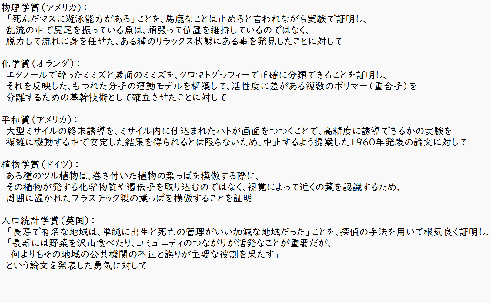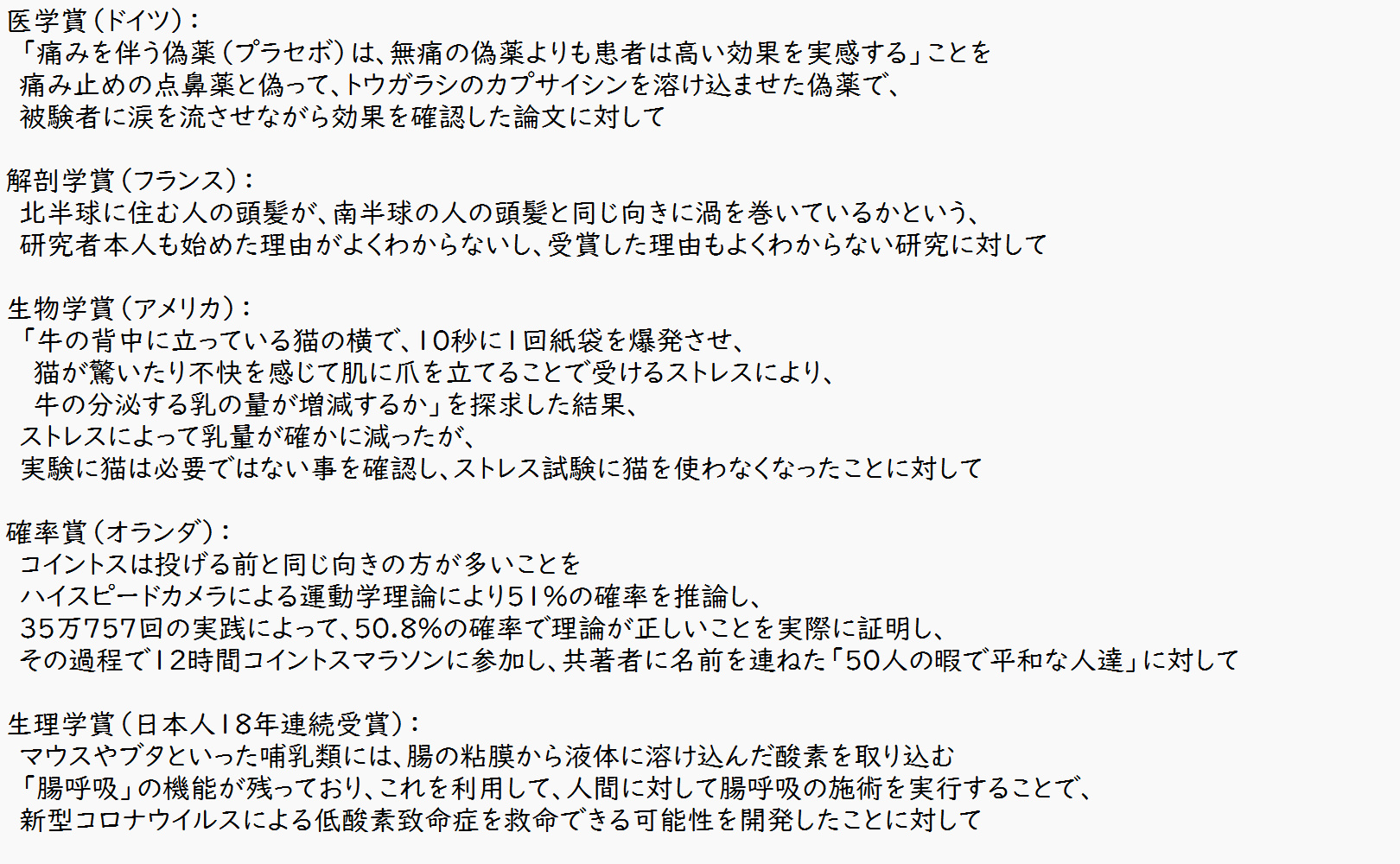 イグ・ノーベル賞の一覧見てたんだけど去年受賞に牛が牛乳を出す条件を猫を牛の背中に乗せて紙袋を爆発させて調べるってのがあったんだよねこのスレは古いので、もうすぐ消えます。