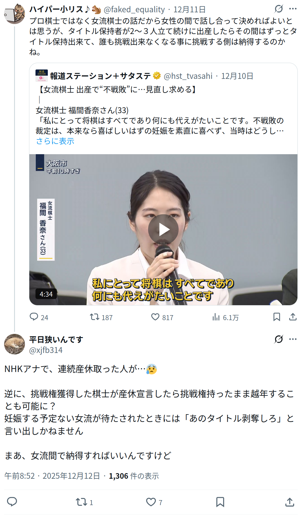 | … | 625/12/14(日)05:07:18No.1382270168+NHKアナはなんか関係あんの? |