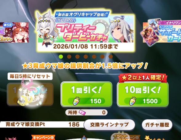 | … | 2725/12/14(日)10:05:28 ID:308lrmFcNo.1382308215+失敗率が20%超えているけどここでトレーニング成功すれば次のターン超回復で入浴券が取れるのでトレーニングをするヨシ! |