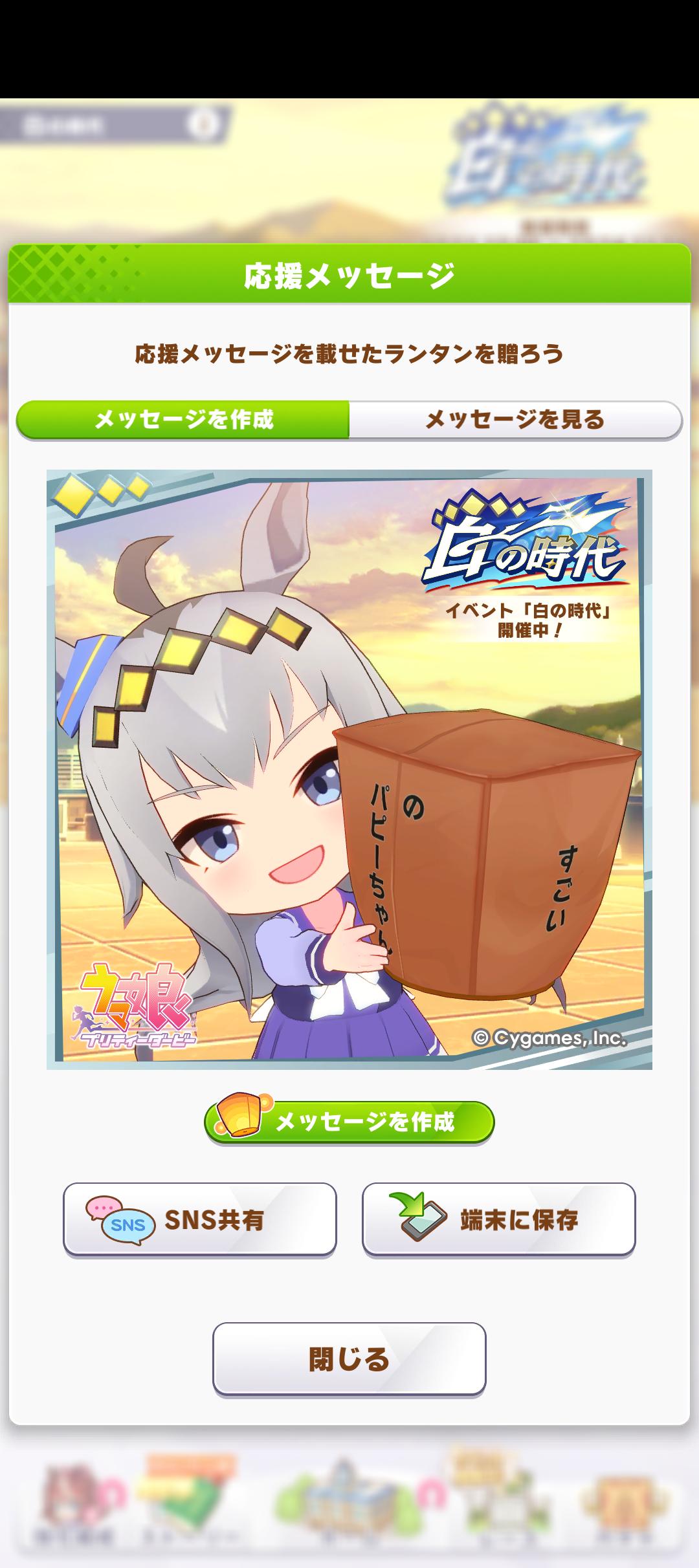 | … | 21825/12/14(日)11:32:41 ID:9DAf5m5MNo.1382328813+ぱかライブでランタンメッセージ拾ってくれたら嬉しいですが基本放送の時点で終わってるイベントには触れないので無さそうですかね |