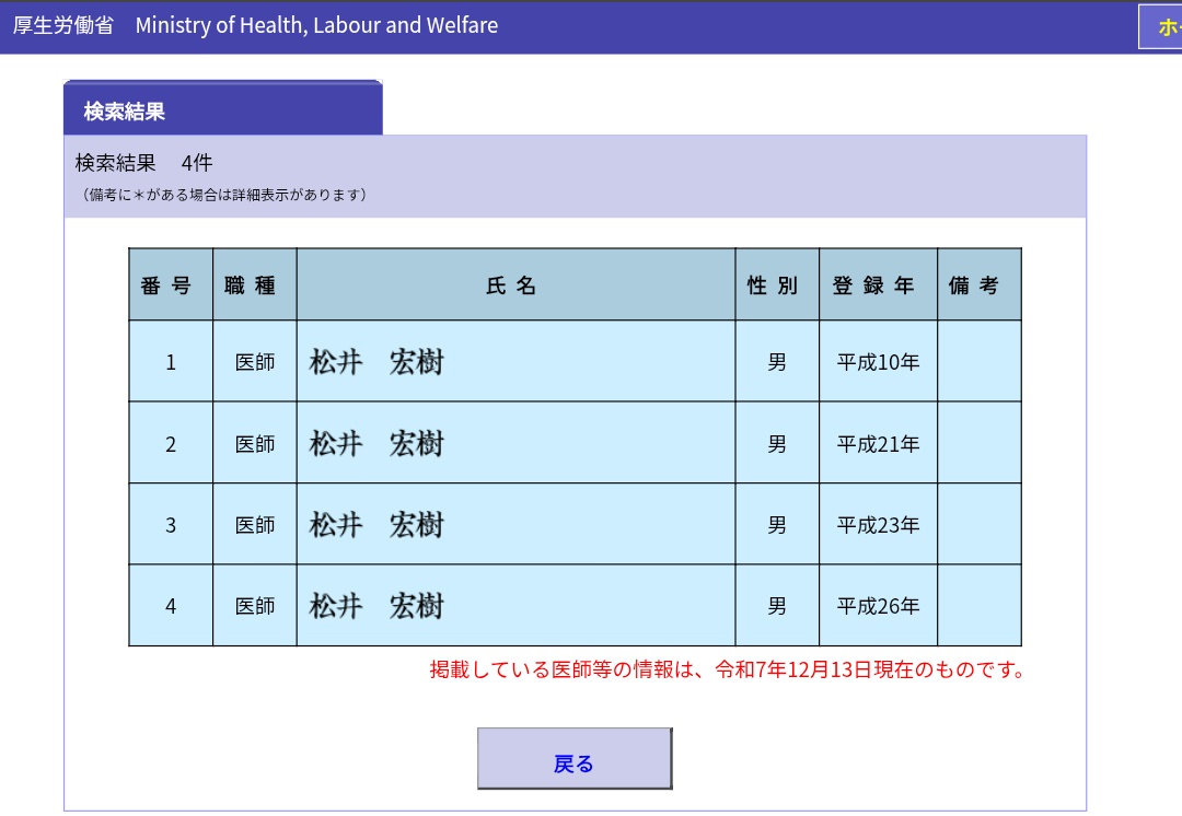 | … | 1225/12/14(日)17:34:43No.1382446153+まだ医師免許持ってるのかよ |