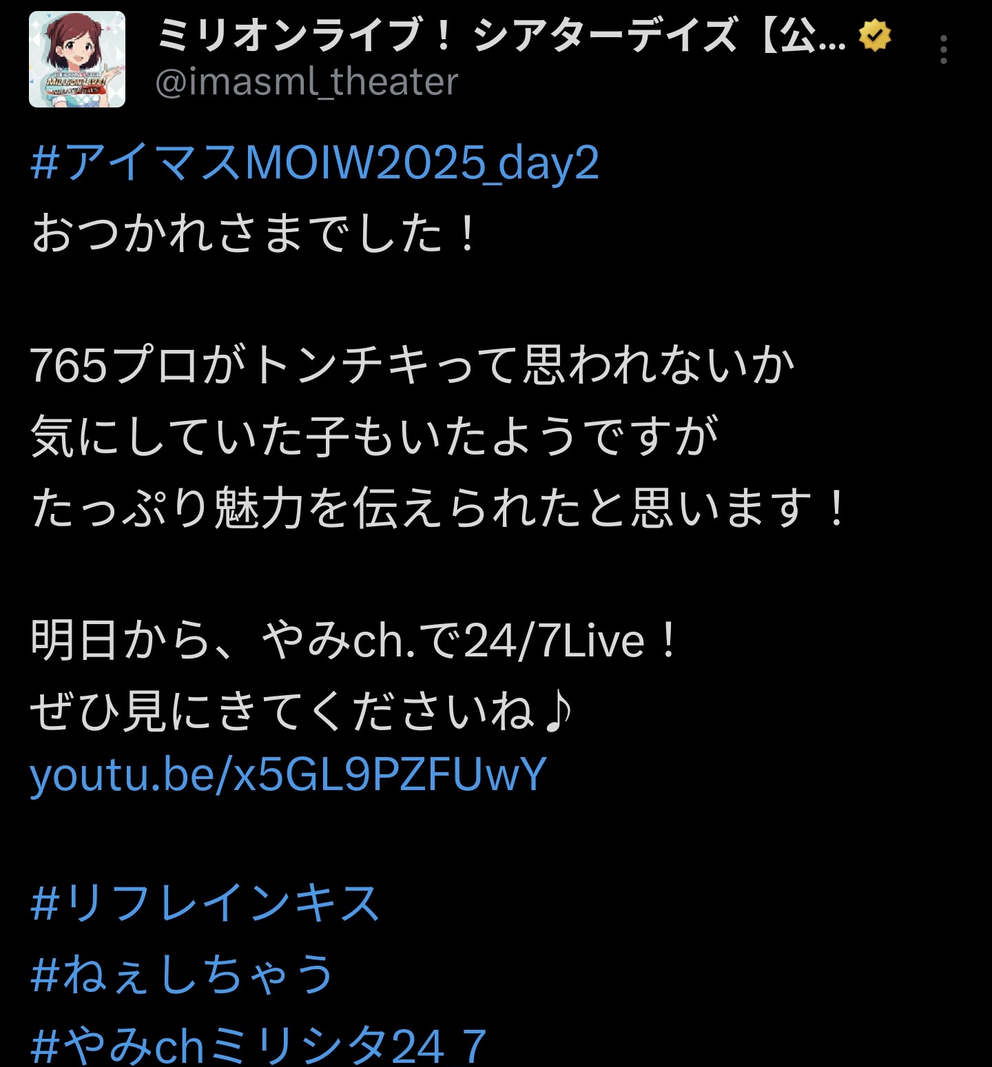 | … | 5325/12/14(日)20:08:56 ID:PT52MbO6No.1382511638+THE IDOLM@STER 20th Anniversary MORE RE@LITY LIVE |