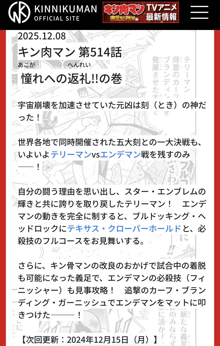 | … | 15325/12/15(月)10:12:53No.1382687862+今回の試合はゆでも試合途中で悩んで微妙だな…ってなったのかなって最新話見て思ってしまった |