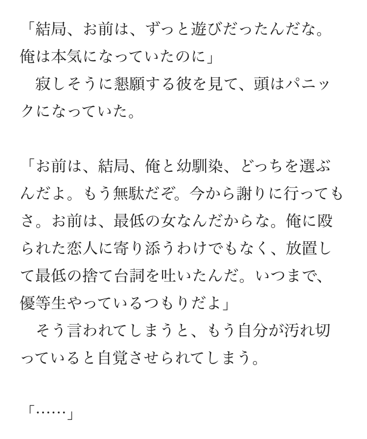 | … | 61925/12/15(月)13:27:45No.1382733205そうだねx3>チャラ男があまりに悪辣なんで美雪が可哀想 |