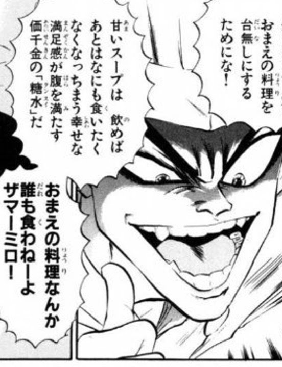 | … | 2125/12/15(月)19:28:42No.1382823195+漫画の料理対決はほとんど後から出されたほうが勝つってある種のテンプレ逆手に取ったやつだからなこれ |