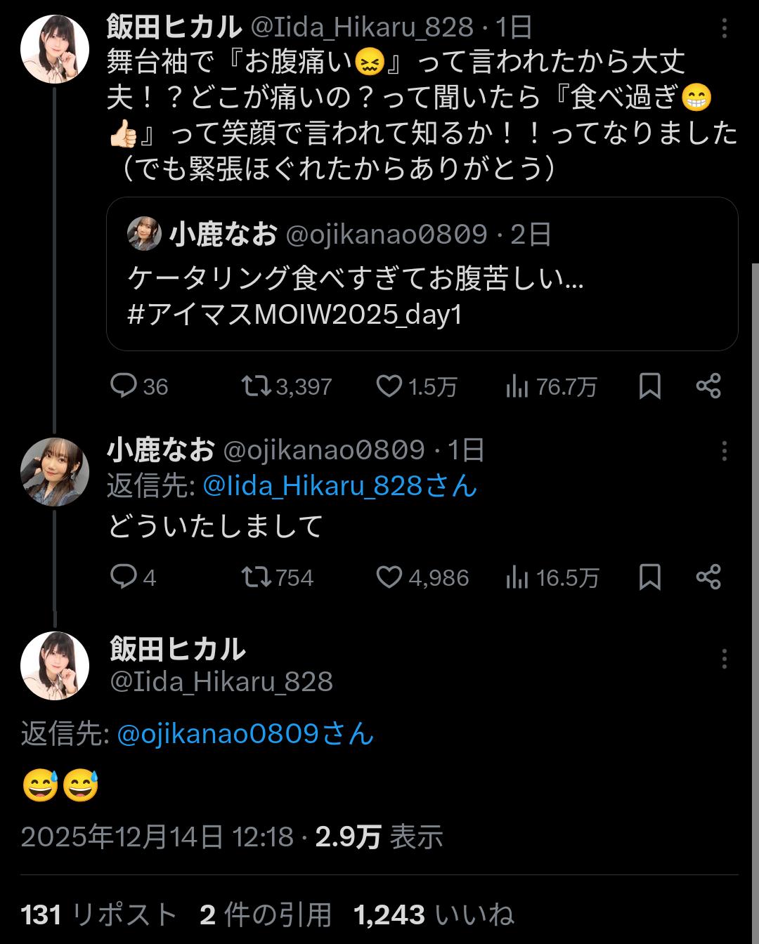 | … | 1525/12/15(月)19:28:01No.1382822934+>月村手毬は食いしん坊のギャグキャラと思われがちですが本当はアイドルに対してストイックでかっこいい良い子でして… |