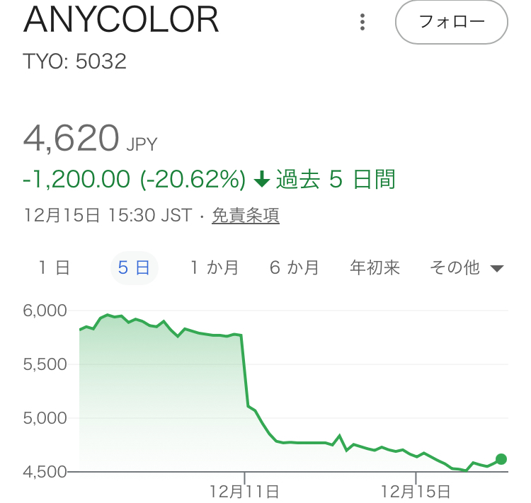 | … | 5725/12/16(火)09:33:28No.1383003547そうだねx20>>何でエニーカラーの株を手放した人がカバーの株を買うって関連付けが少しでもあると思うのか本気で分からない…… |