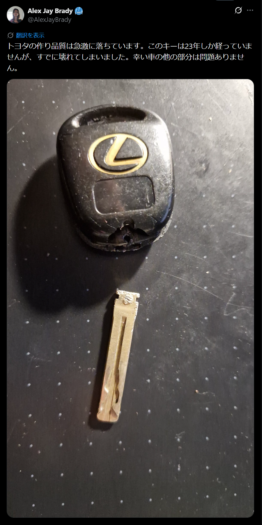 | … | 125/12/16(火)12:34:28No.1383042276そうだねx7折れたレクサス |