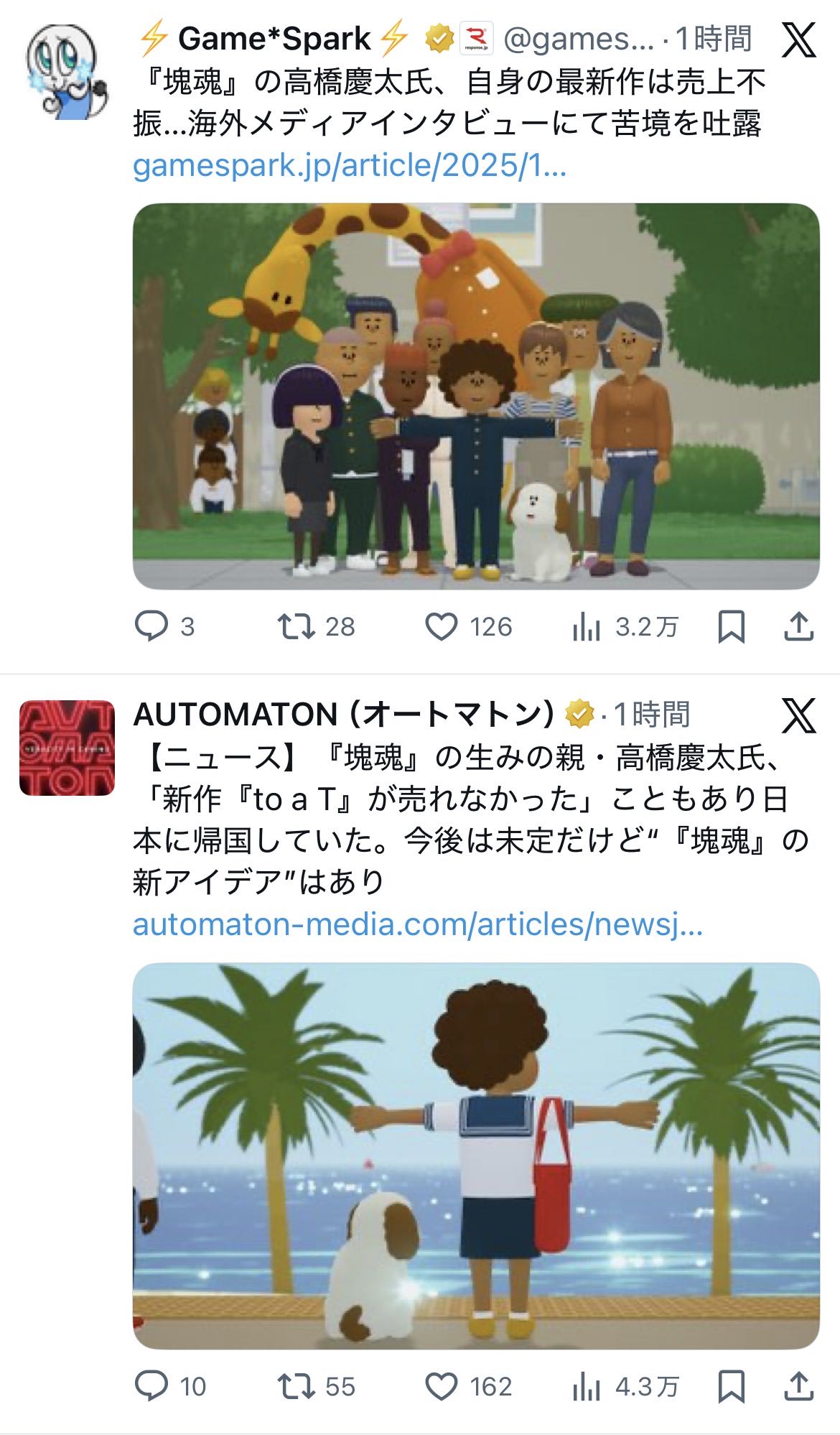| … | 225/12/16(火)16:00:03No.1383090091+塊魂のあとは塊魂の生みの親の肩書きでゲームっぽいものいくつか出して大して売れないの繰り返しの人だし |