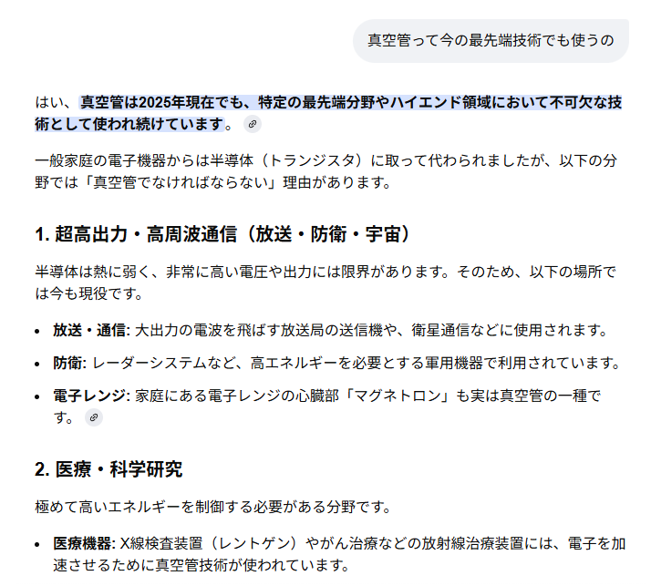 | … | 8025/12/17(水)12:26:39No.1383343942+>真空管って今の最先端技術でも使うのん? |