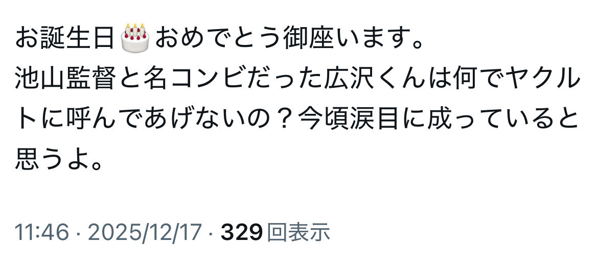 池山隆寛監督🎉バースデー🍰補強はありませんでした…このスレは古いので、もうすぐ消えます。