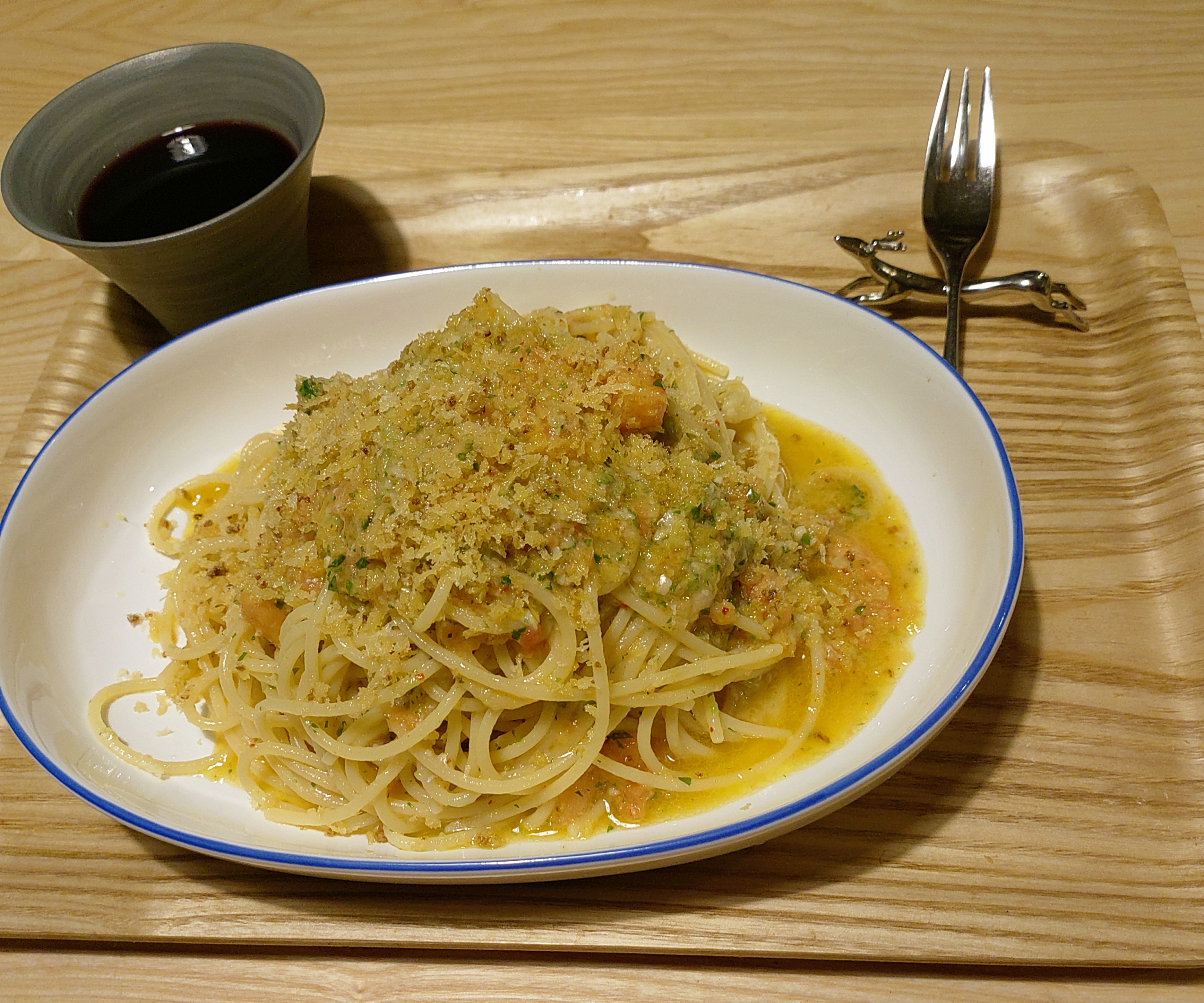 >ペペロンチーノ+炒ったパン粉って事でいいの?