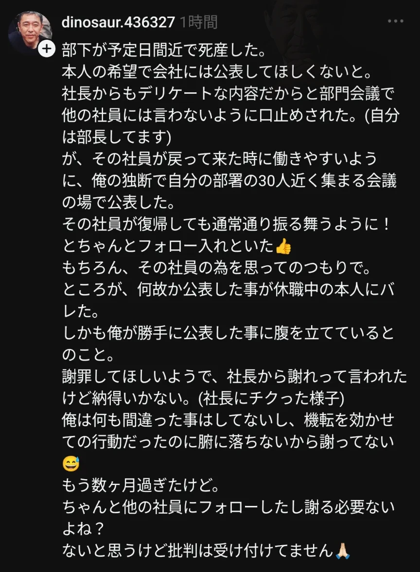 | … | 2525/12/18(木)07:52:00No.1383610095+産休明けって絶対に子供のこと聞かれるわけだし間違った対応だけどまぁ正直分からんでもない |