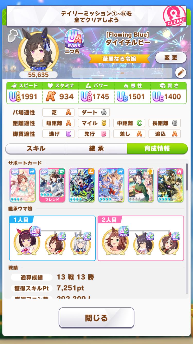 >長距離は2回発動するスキルがあるからそれを狙うっていうのか単純に賢さ乱数で目標速度が高まるのが距離長いのとあってるのどっちかですかね…?