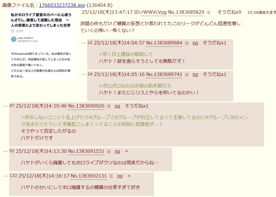 | … | 325/12/18(木)15:35:57No.1383709636そうだねx10ハヤト認定してる奴が荒らしなことと |