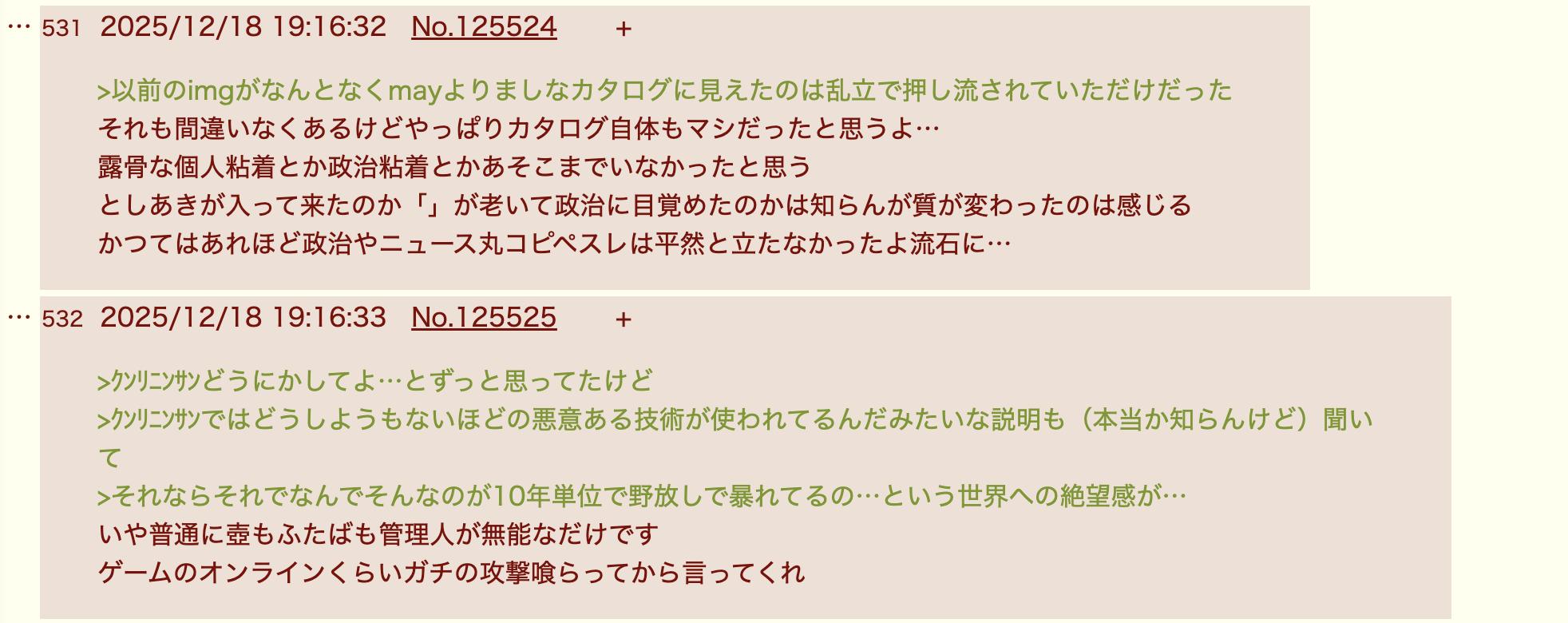 | … | 2025/12/18(木)19:02:57No.1383757796+荒らし叩きってやつか |
