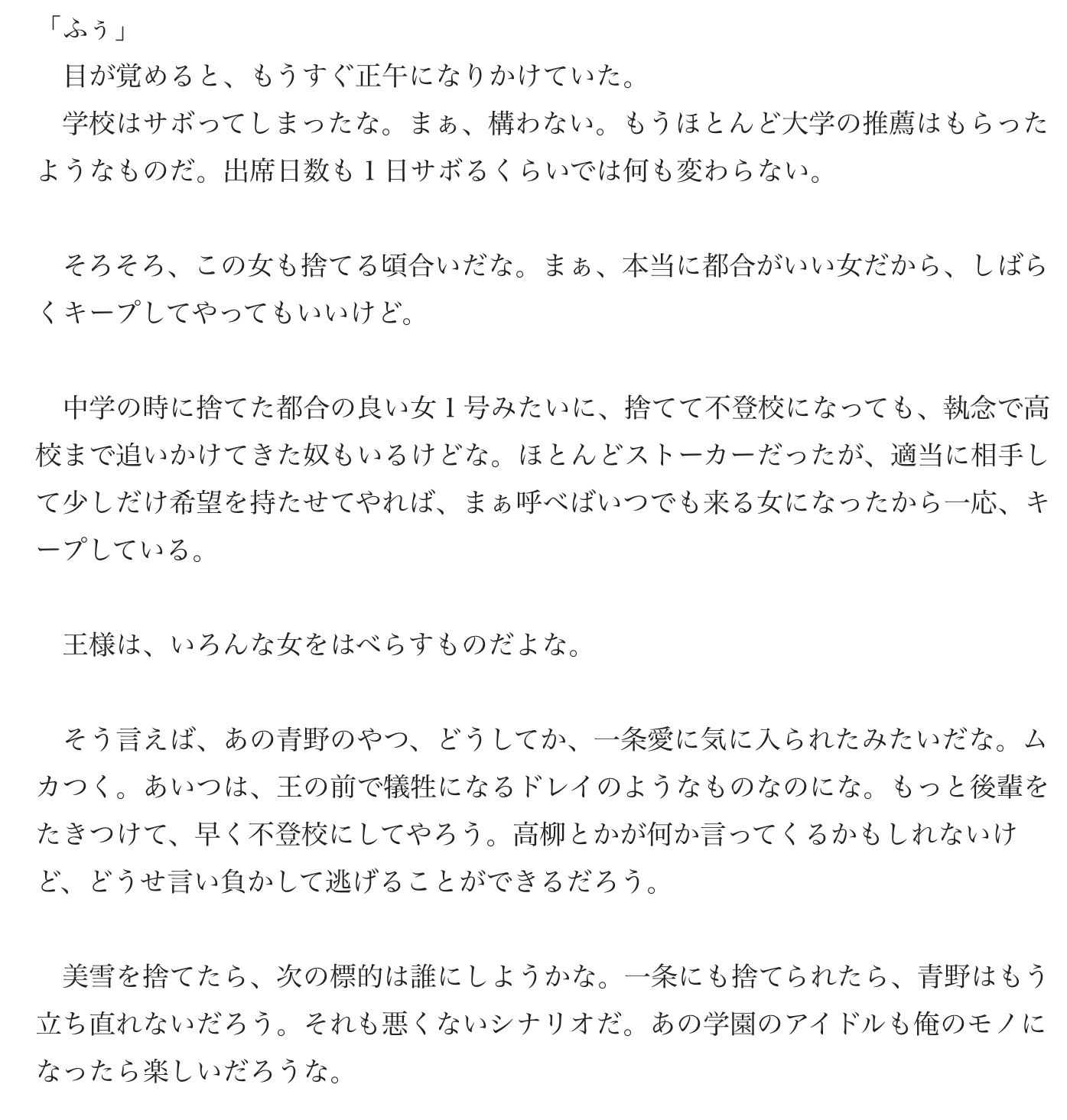 | … | 40025/12/18(木)21:13:29No.1383803668そうだねx1>チャラ男出てくるとこまで書くとしたらワンチャン出てきて青野に復讐してやる〜ってなってるチャラ男を美雪が刺す展開とかありそうあってほしい |