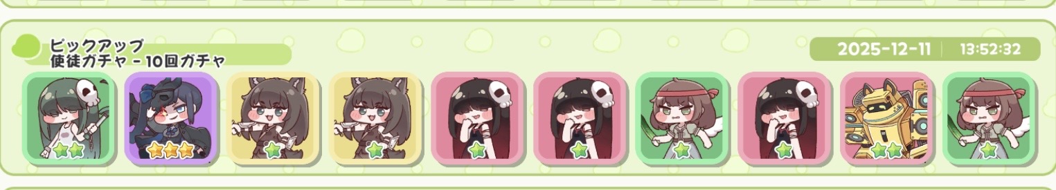 | … | 22625/12/19(金)00:39:49 ID:4XLirPIENo.1383872932+>低レア使徒も強化したら強くなるにゃん? 一部☆2でも強いキャラいるけど基本はならない認識でいいにゃん |