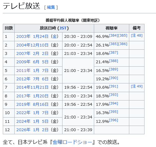 | … | 5325/12/19(金)09:25:22No.1383922713+>視聴率46.9%!? |