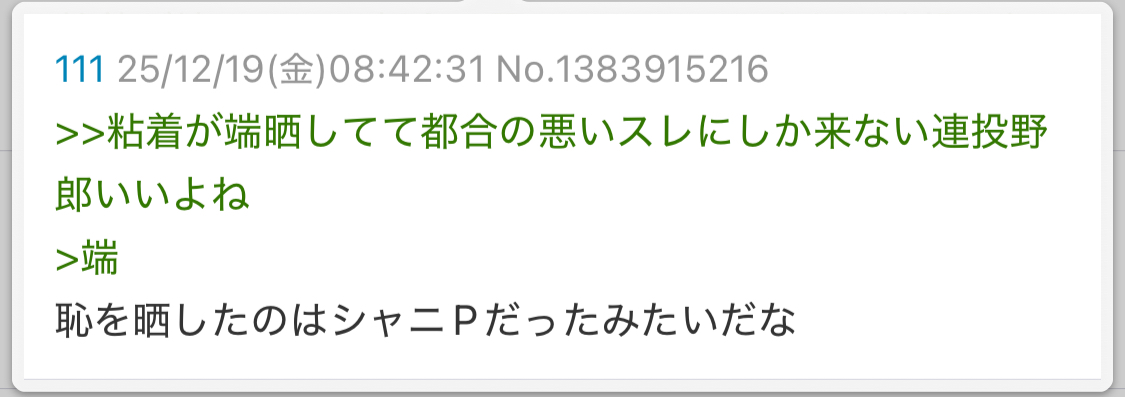 | … | 6025/12/20(土)04:01:09No.1384193526+風俗おじもシーズ嫌いなのにシーズ異常に持ち上げたり大変だよな |
