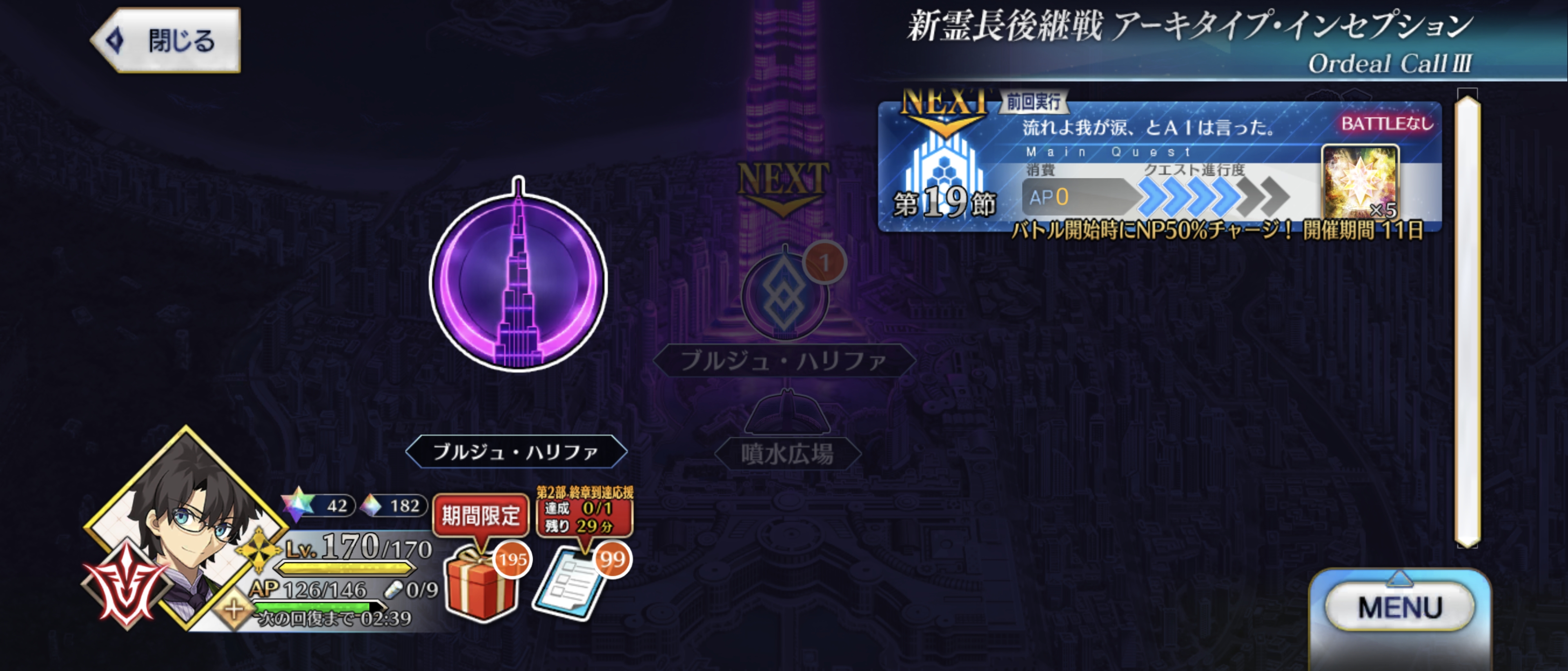 マシュ120にするぞ!と2時間前から種火ぐるぐるして109でフィニッシュ