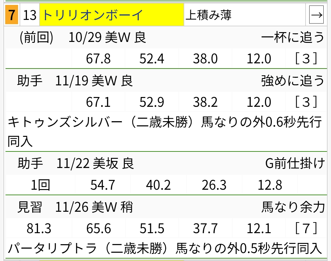 | … | 525/12/21(日)19:09:49 ID:sPkt90OwNo.1384775474+>【御影S】(阪神)3歳馬ながら経験豊富なトリリオンボーイが、 |