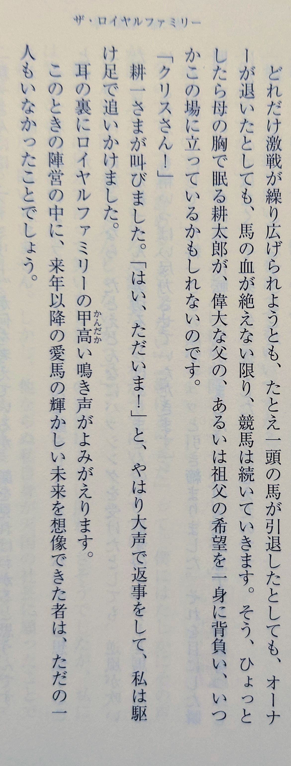 | … | 43325/12/21(日)20:03:50 ID:O71y56QANo.1384799984そうだねx6>ロイヤルファミリー(原作)に関してはこの一文で終わって後は戦績表のページなのが美しい締めなんです |