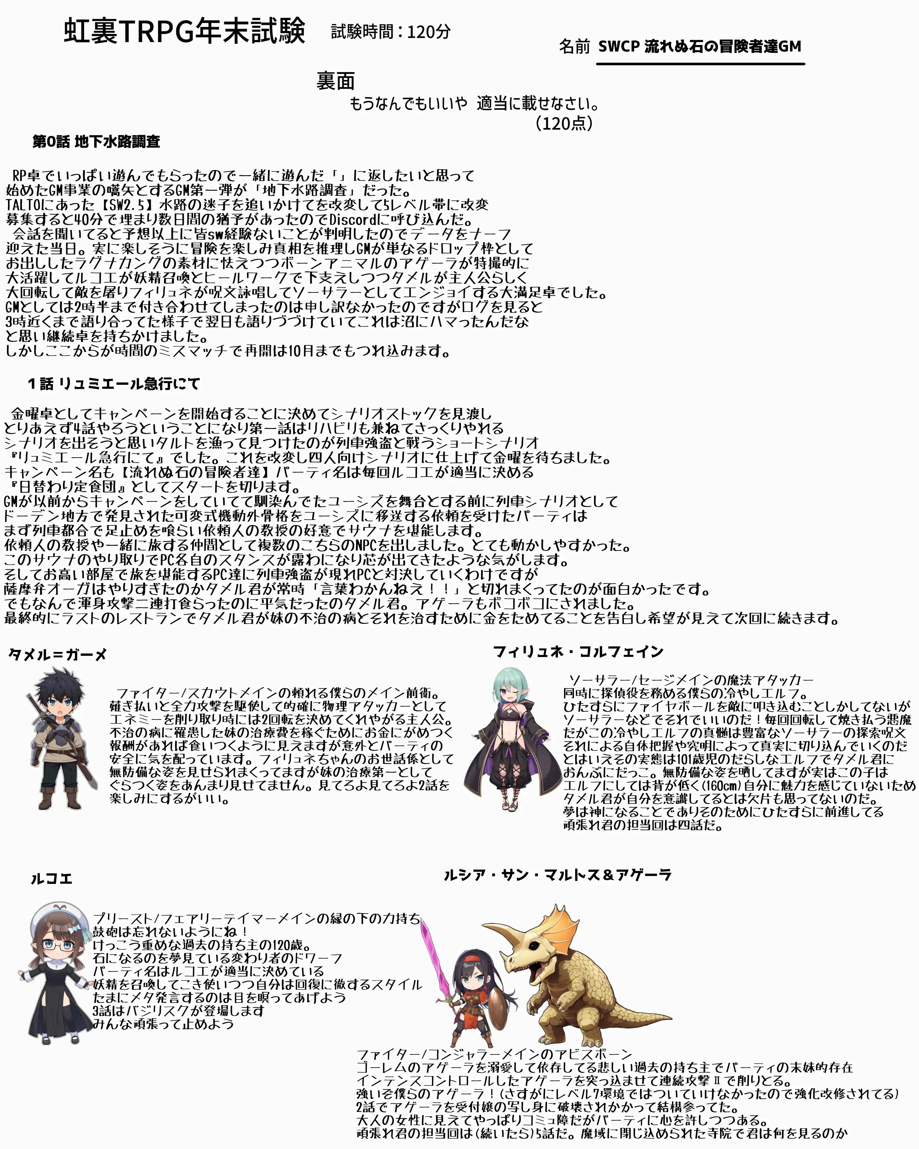 | … | 925/12/21(日)20:35:05No.1384817856そうだねx1>sw2.5キャンペーン『流れぬ石の冒険者達』のテスト回答しました |