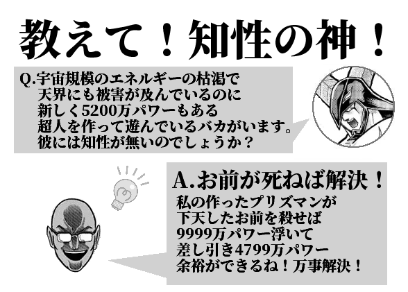 | … | 96325/12/22(月)01:15:29No.1384940251+超人や超神という存在そのものが要らないのだ!という過激派時間超人も出てくるかもしれない |