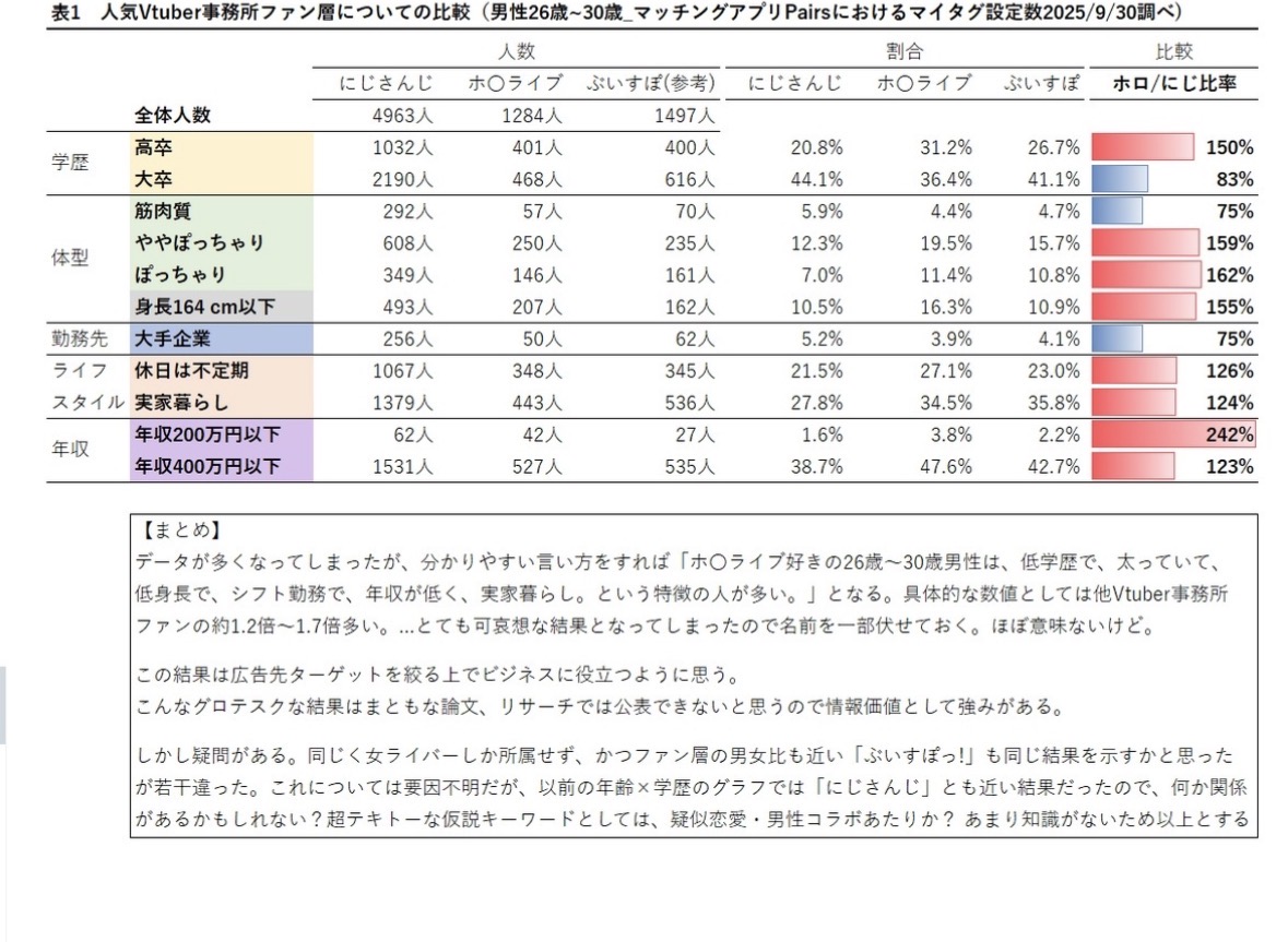 | … | 625/12/22(月)20:52:47No.1385165137そうだねx26にじさんじのリスナーが他2つに対してマッチングアプリ利用者が4倍近く |