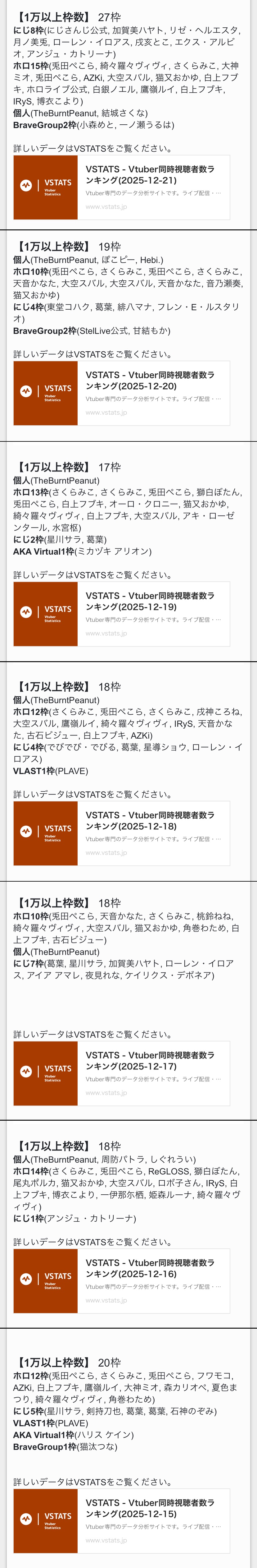| … | 6925/12/22(月)21:12:38No.1385172969+ホロはライバーが女ばっかでファンは独身男性が多く |