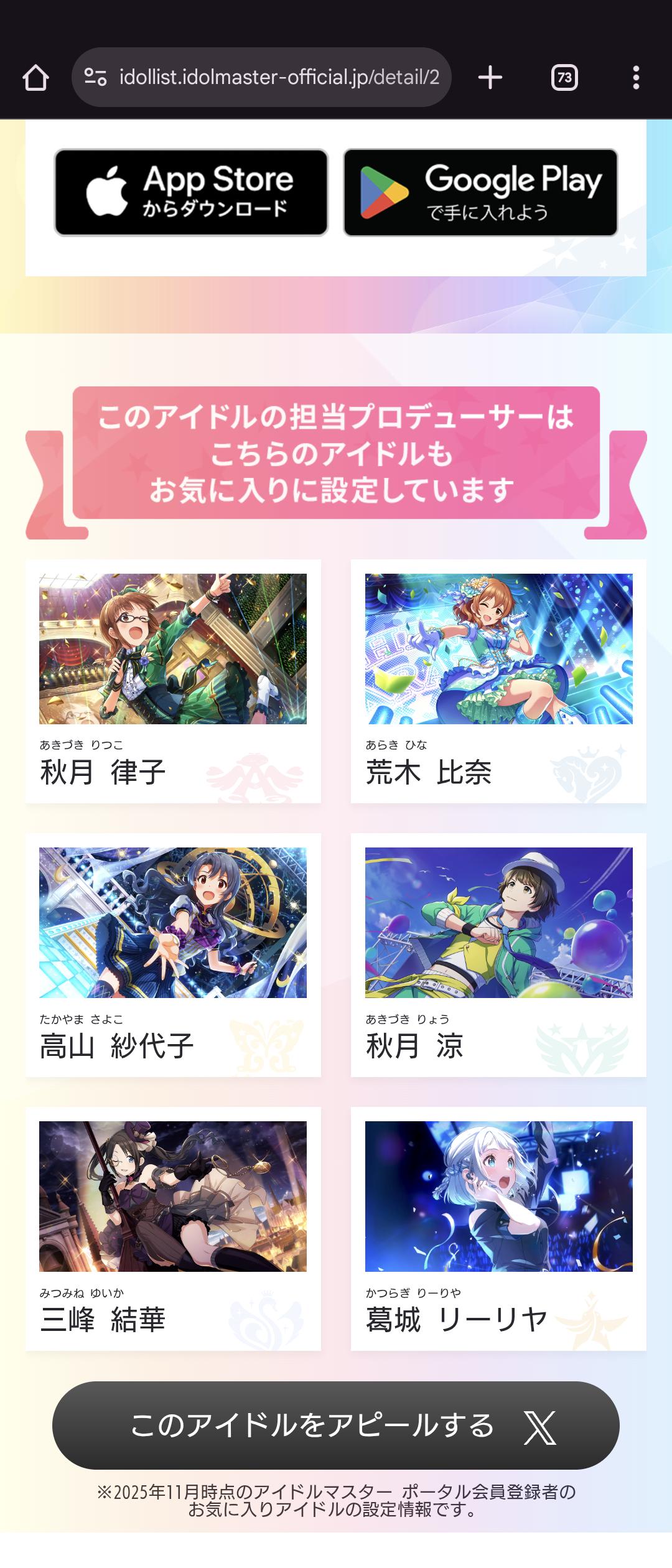 | … | 22025/12/23(火)14:56:47No.1385390422+>母数利で勝負されて一番上しか表示されないから各アイドルのつながりで一番好きなキャラ本当にこれなの?っていうの多くない? |