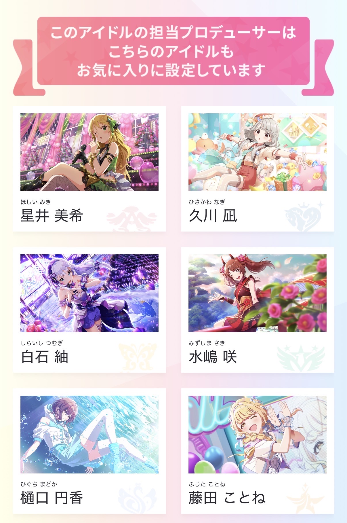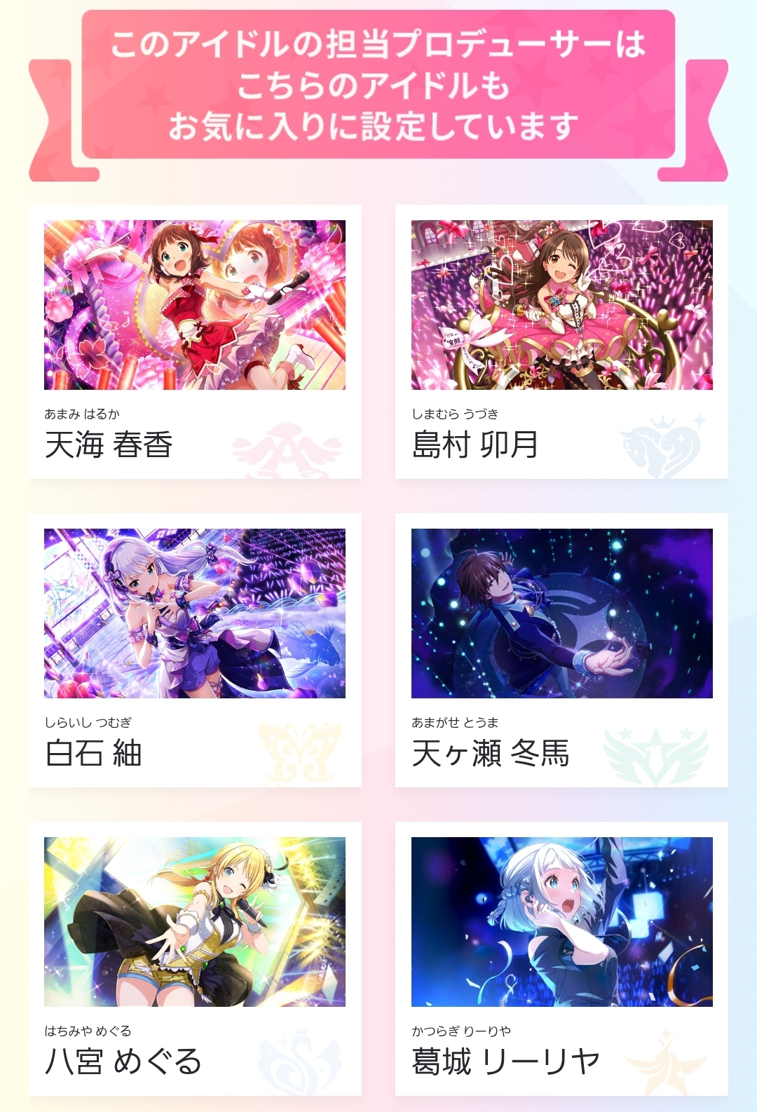 | … | 3625/12/23(火)13:34:50No.1385372427そうだねx11>あさひPと愛依Pは冬優子推しなのに冬優子Pは2人に興味ないの残酷で好き |