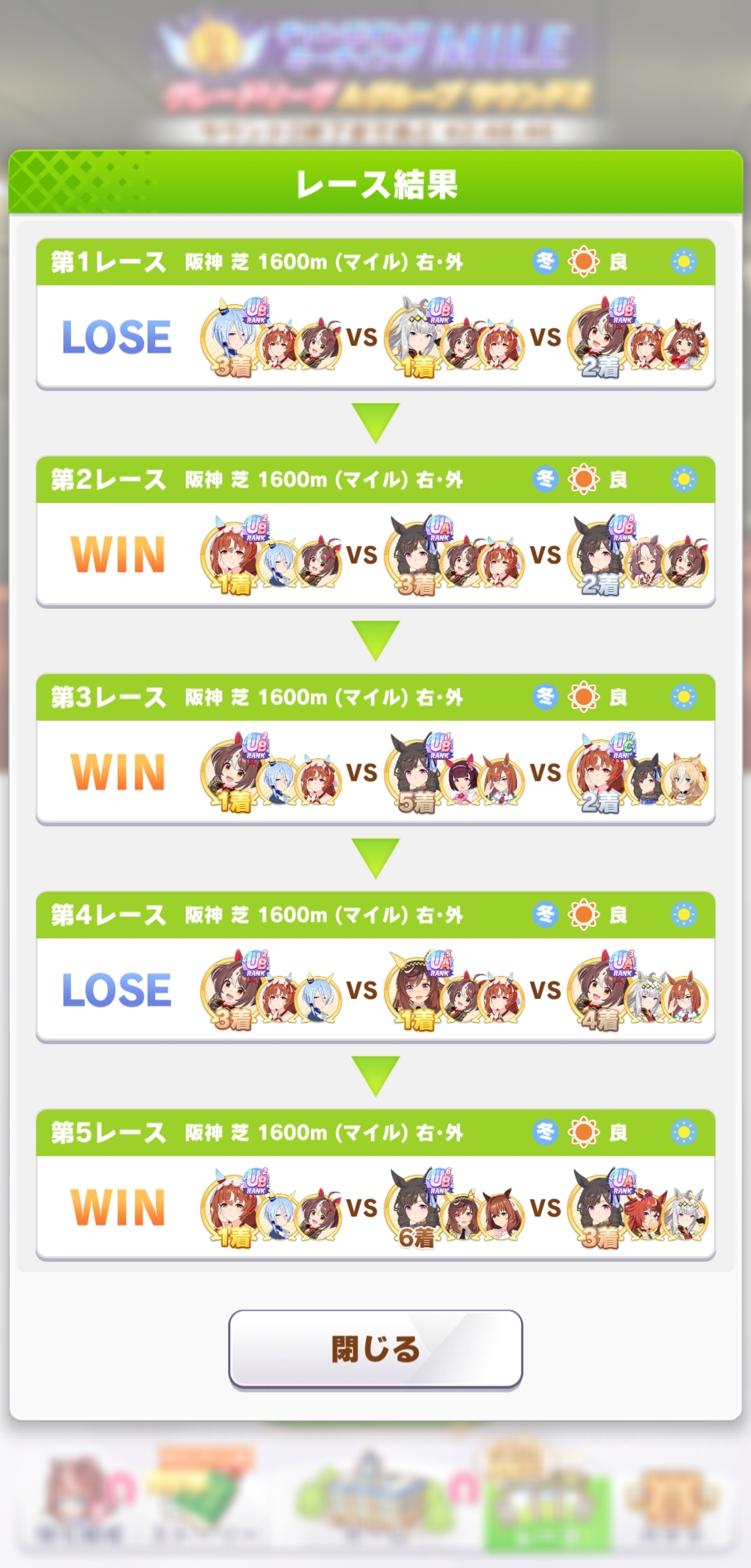 | … | 19725/12/23(火)17:53:53 ID:BkD8AAlwNo.1385428192+惜しい出来のマイルちゃんを妥協して投入したはずが割と勝ってAケツ行けましたけどマイルだと本当に強いですねマイルちゃん |