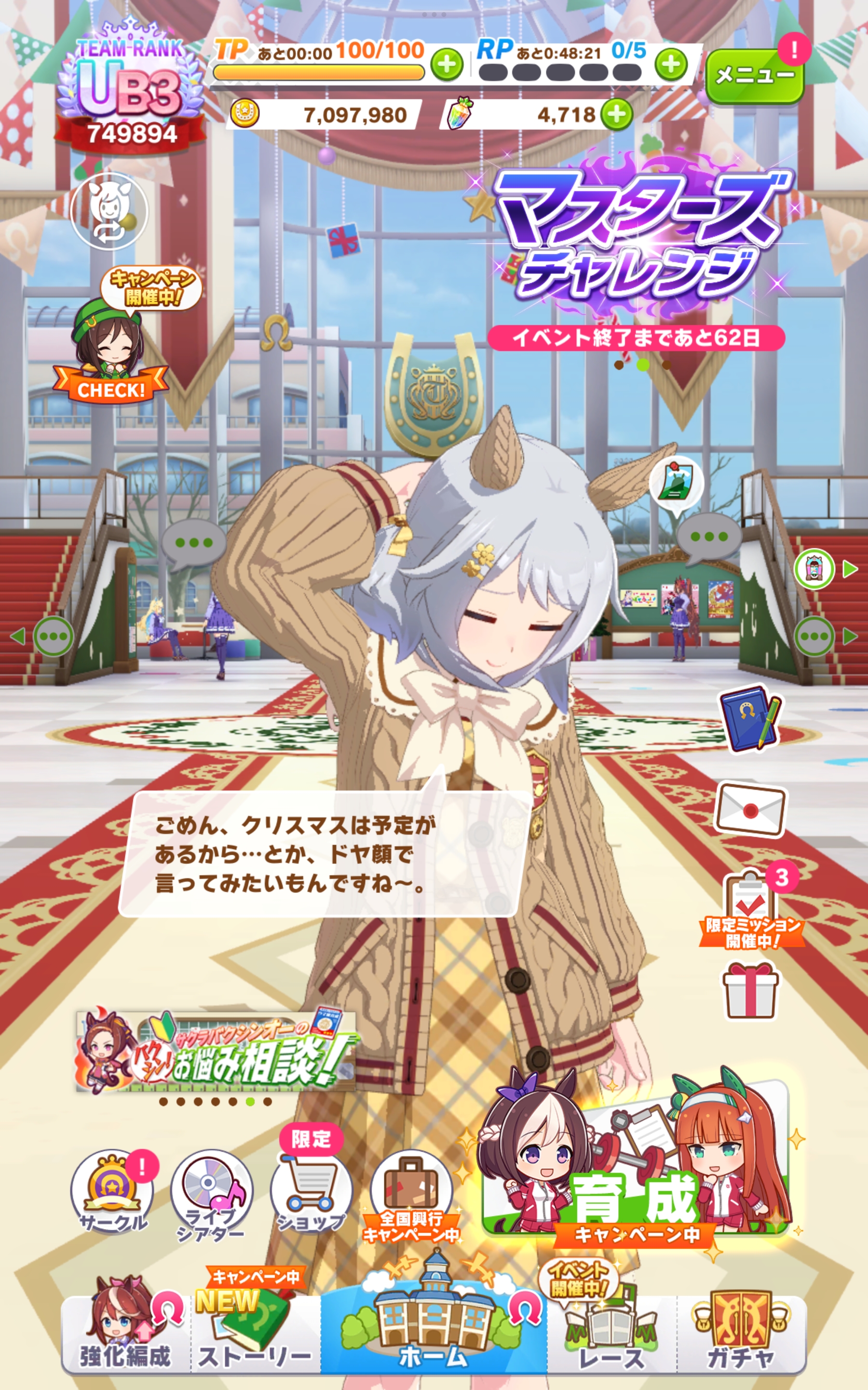 >ルビーさんとクリスマスを過ごしたいですがきっとルビーさんは豪華なクリスマスパーティーに招待され出席することでしょうから1人トレーナー室で仕事をします |