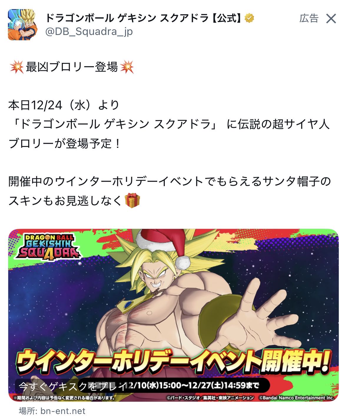| … | 9425/12/24(水)15:11:38No.1385695059+クリスマスシーズンにブロリー参戦させるかってなった時にスレ画になるのはまだ理解出来る |