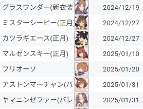 | … | 25225/12/24(水)18:53:47No.1385746386+>ディープブリランテ欲しいけど絡める子が少ないか… |