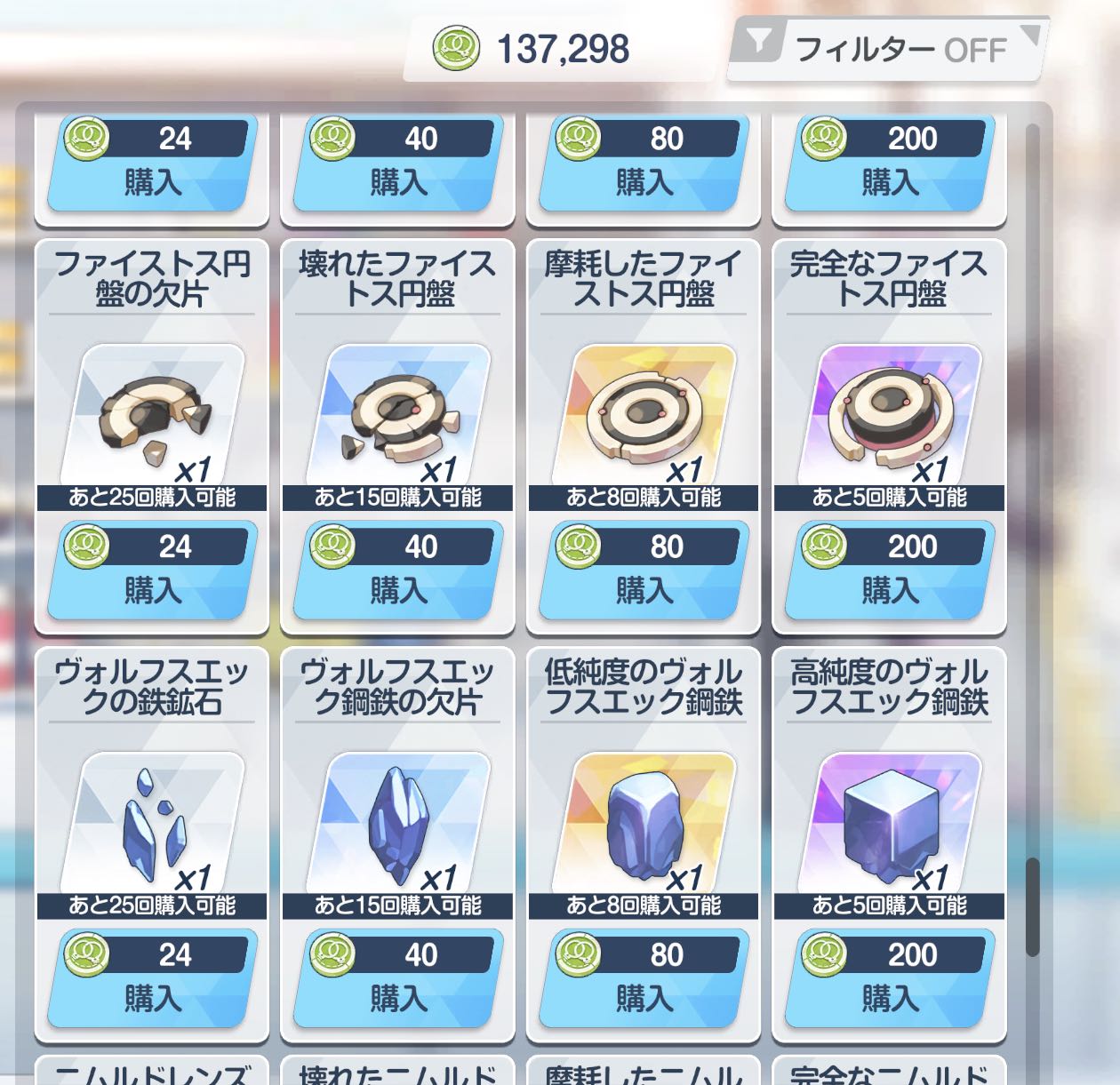 | … | 61025/12/24(水)20:20:56No.1385780991+しめてはショップは使わない学園だけの月がまあまああったから溜まっていったけどいざ使い始めるとすごい勢いでコイン減りそう |