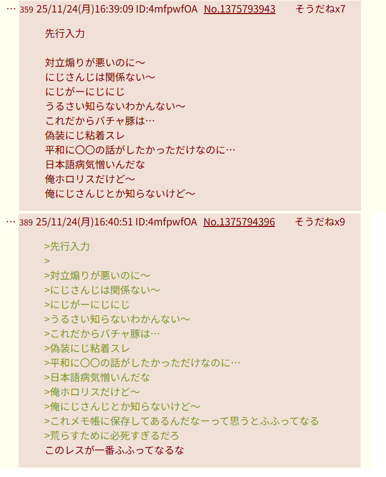| … | 2525/12/24(水)20:52:47No.1385796099そうだねx14そもそもにじ有でにじリスがハヤト連呼して荒らしてるの自白してただろ |
