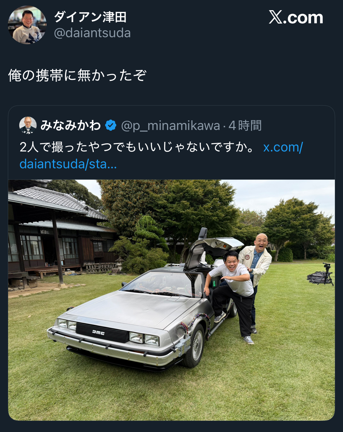 | … | 53925/12/25(木)10:47:58No.1385959614そうだねx2>>地味にちゃんと動くデロリアン作ってるの予算のかけ方凄くない? |