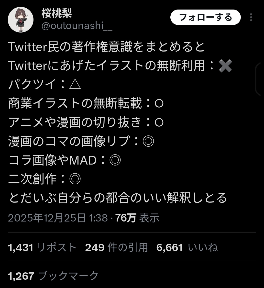 | … | 24425/12/25(木)18:18:01No.1386062373+>>著作権法は改正されたんで |