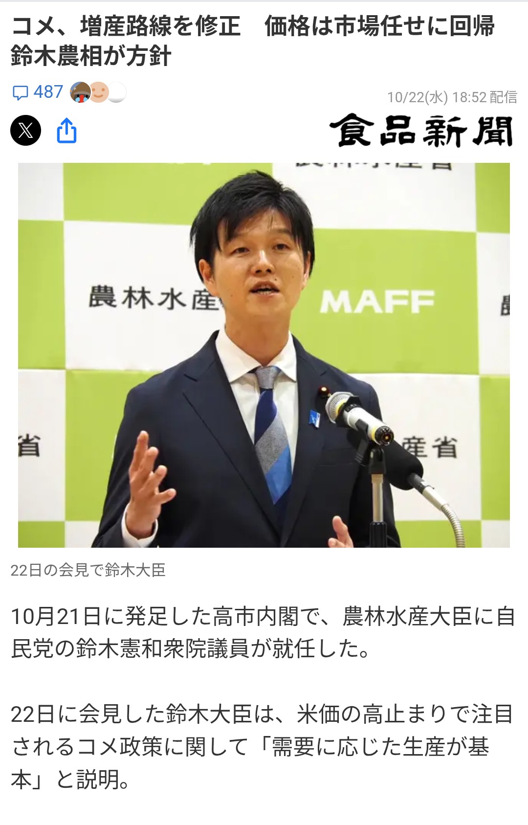 >>コメの値段を管理したいのか放任したいのか調整したいのか維持したいのか分からん