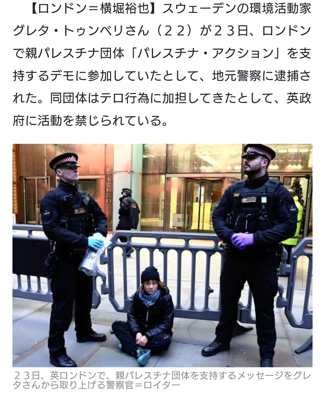 | … | 1125/12/25(木)22:44:37No.1386164120そうだねx4グレタさんの肩持つわけではないけどイギリスだし多分不当なテロ認定とかだと思う |