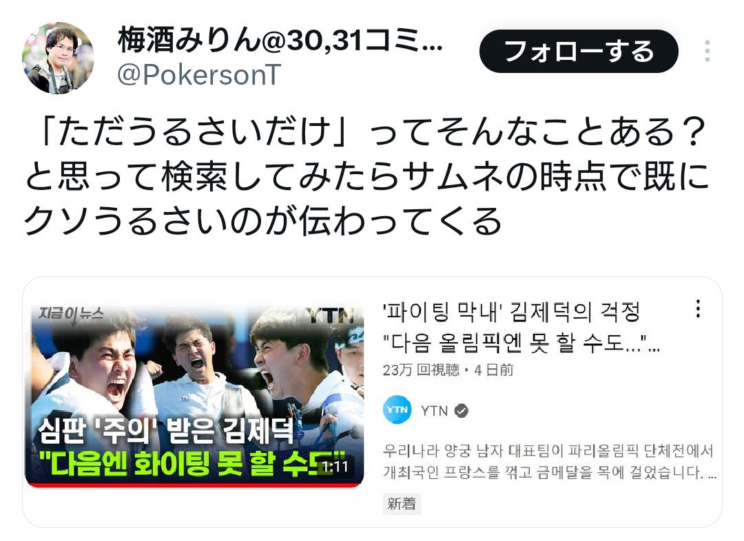 | … | 12325/12/26(金)12:01:21No.1386286089+これ韓国の方が炎上するやつだろ…いつかやると思ったとか事実はどうあれなんとかしろって |