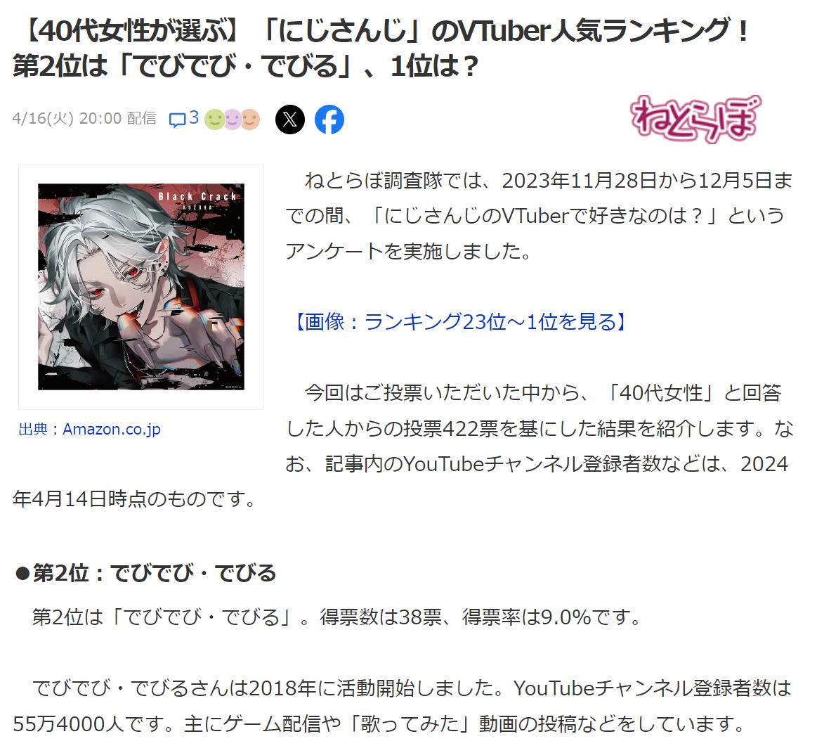 【40代女性が選ぶ】 「にじさんじ」のVTuber人気ランキング!